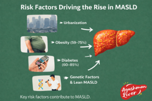 MASLD, or Metabolic Dysfunction-Associated Steatotic Liver Disease, affects 16-32% of India’s general population, impacting nearly 120 million people, with about 31% progressing to MASH. Recent studies using FibroScan reveal even higher rates, up to 68.2% prevalence nationwide, driven by urbanization, obesity, type 2 diabetes, insulin resistance, dyslipidemia, and metabolic syndrome. These intertwined factors amplify risks, even in lean individuals, amid rapid lifestyle shifts and genetic predispositions.​